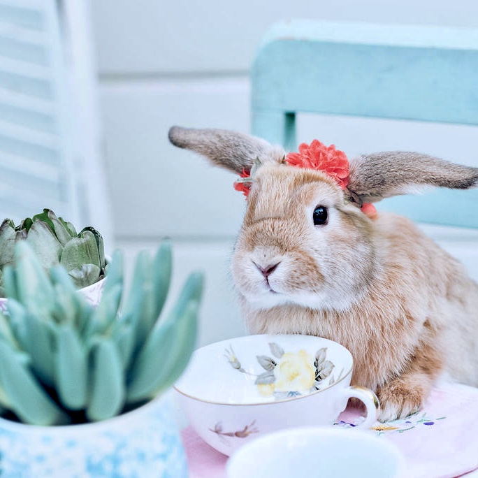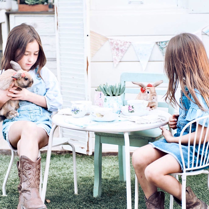 The bunnies wore flower crowns and joined the girls for afternoon tea! The table was set with vintage tea cups and the girls felt so fancy.