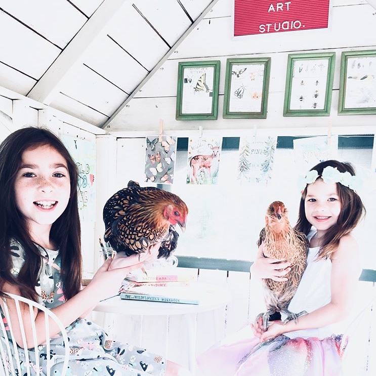 Speaking of a space to be inventive, this is inside their completely remodeled playhouse! Last summer these two girls worked everyday to paint it white and make an art studio. I will post all the pictures of this adorable transformation here!